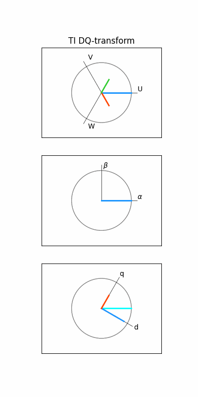 반대로, DQ상에서 UVW상으로 변환하는 것을 "DQ 역변환"이라 부른다.