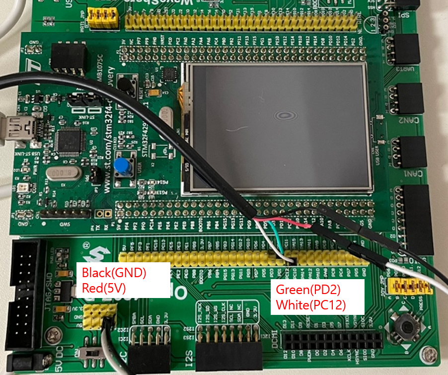 그림 1에 5V 연장선의 백색 케이블은 UART 케이블의 적색 케이블과 연결되있음을 잊지 말자!