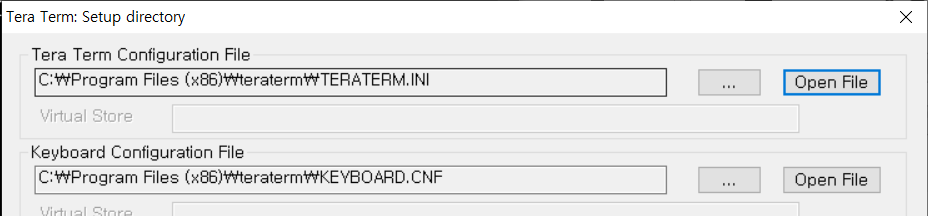 맨 위의 "Open File"을 클릭하면, TERATERM.INI가 실행된다.