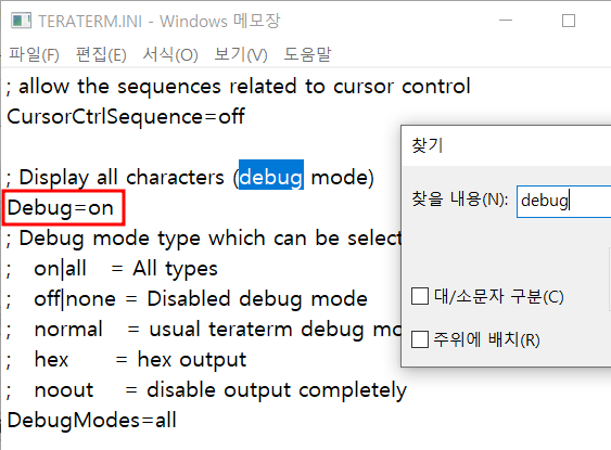 [설정] - [Setup directory...] 로 들어가서 TERATERM.INI 파일을 열어야 한다.