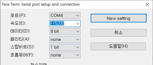 [설정] - [시리얼포트]로 들어가서 CubeMX의 UART 설정에서 골랐던 Baudrate와 똑같이 한다.