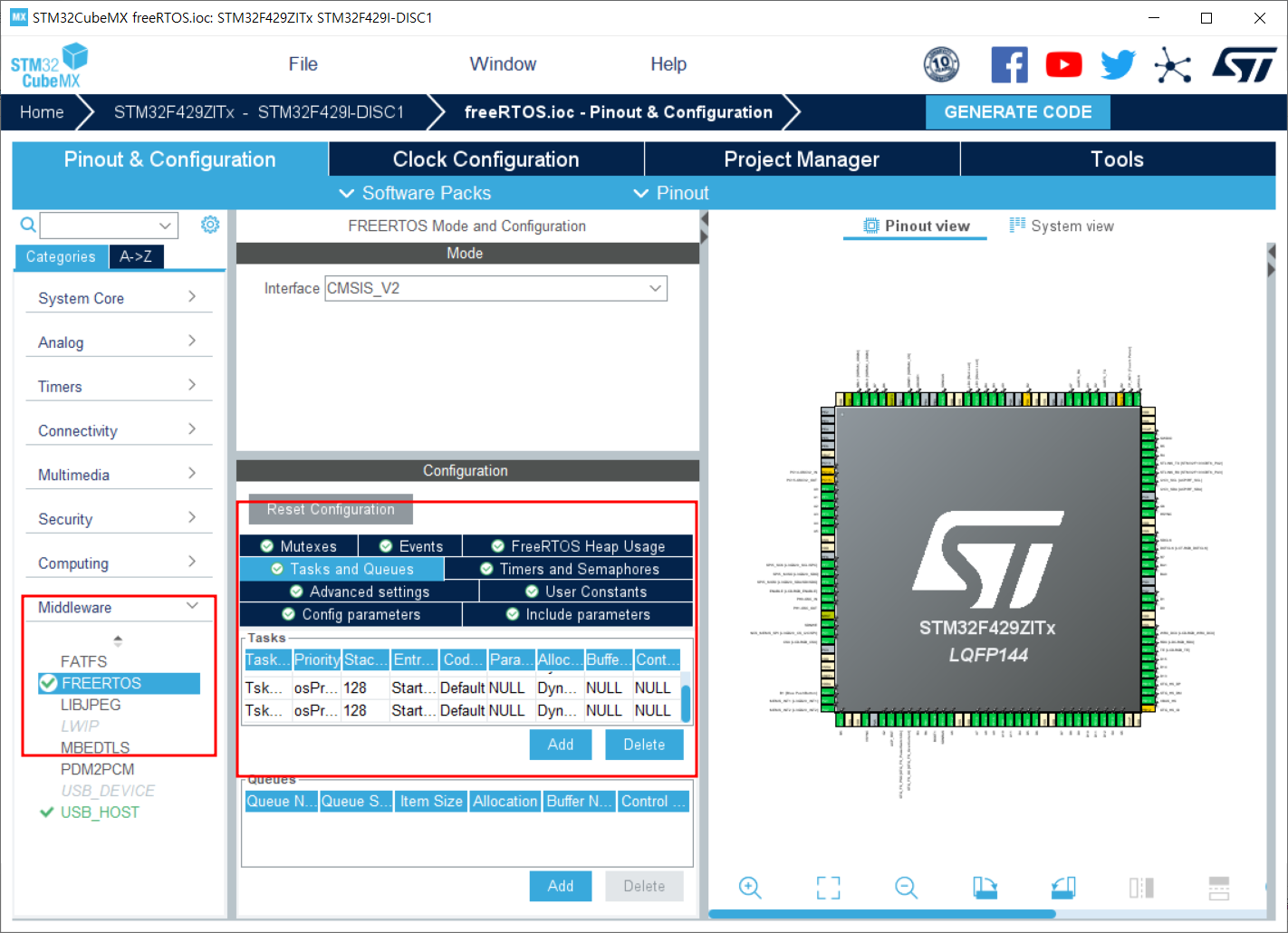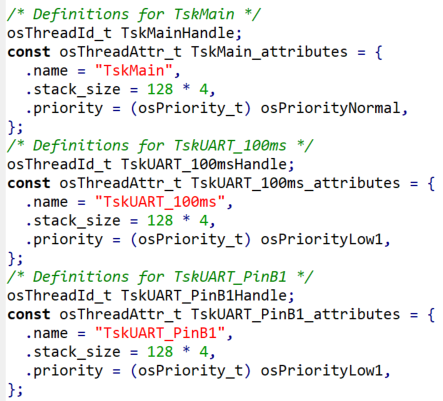 main.c의 상단에 가면, 각종 핸들러 변수 정의와 함께 태스크에 대한 정의가 생성된다.