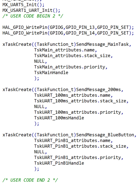 그 다음으로 main.c 안에 태스크를 생성하는 코드를 작성한다.