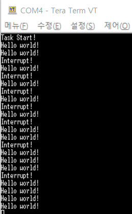 아래 그림을 보면 초기 메인 태스크에서 "Task Start!"를 정상적으로 출력하고,