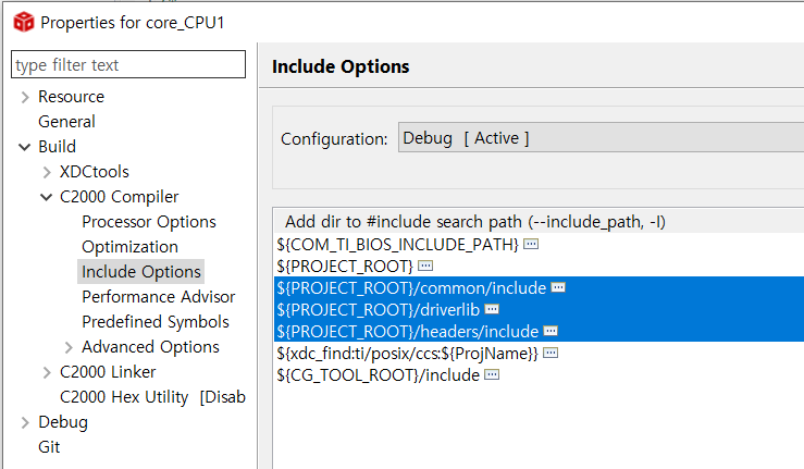 이전 글에서는 전부 C2000의 경로의 폴더를 참조했지만, 에러발생으로 폴더를 복사해서 붙여 넣었다.