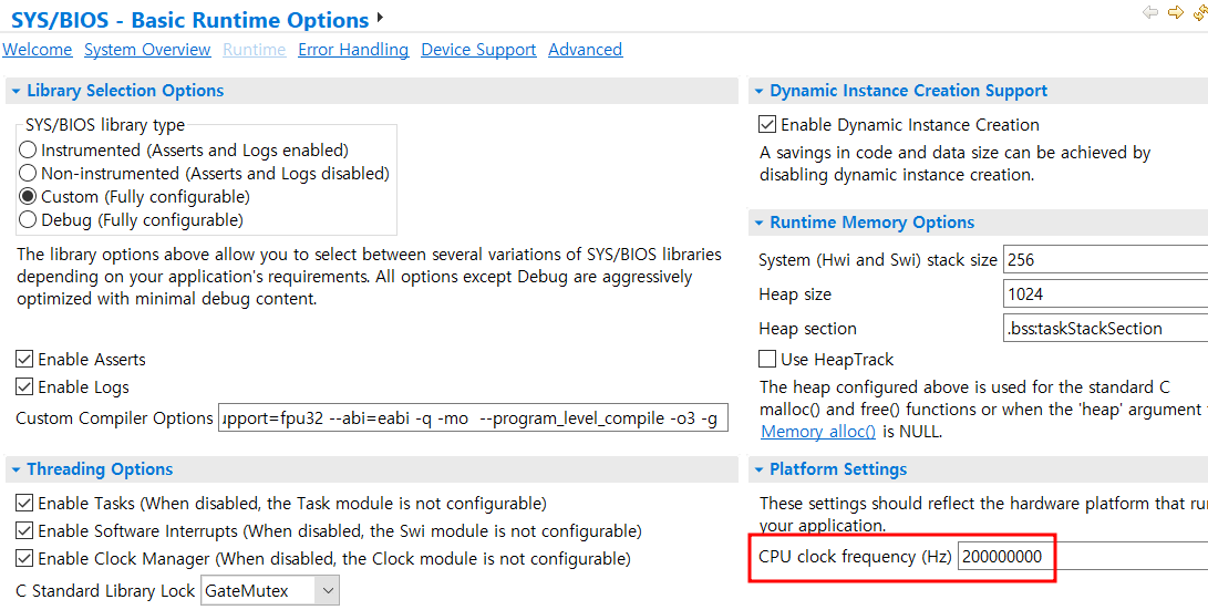 시스템 클럭을 200MHz로 바꿔주자.