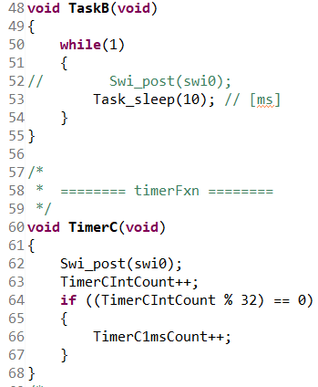 TaskB에서 swi0 호출 코드를 삭제하고, TimerC 함수를 작성한다.