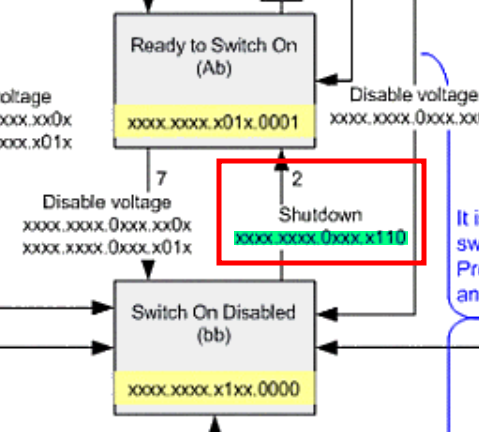 각각의 상태에서의 ControlWord와 StatusWord를 그림에 적어놓았다.