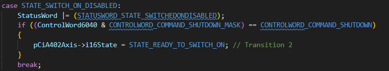 Switch On Disabled 상태에서 ControlWord의 조건이 충족되면 Ready to Switch On 상태로 이동하는 것을 알 수 있다.