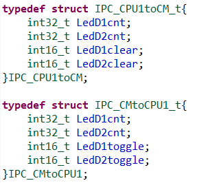 CPU1에서 주고받은 데이터의 구조체 선언을 그림 2와 같이 했다고 가정하면,