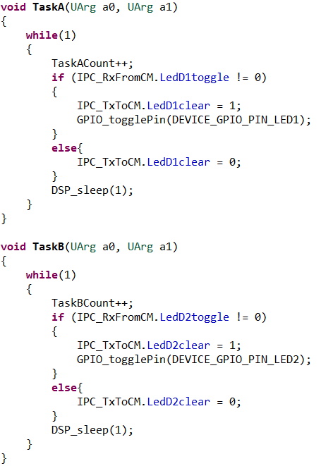 CPU1에서는 토글 명령에 따라 LED를 제어하고, 완료 신호를 CM에 전송한다.